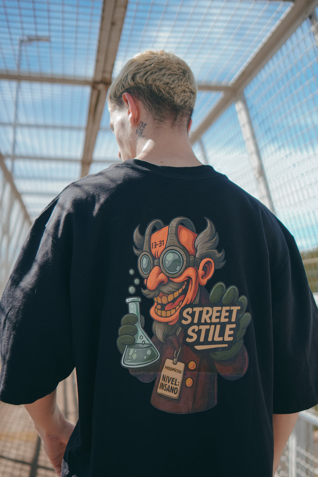 O caimento oversized e a estampa vibrante projetam uma energia incontrolável. Você não apenas veste uma camiseta, você é a reação. Sinta o poder de ser o "Químico Insano" da sua própria vida.