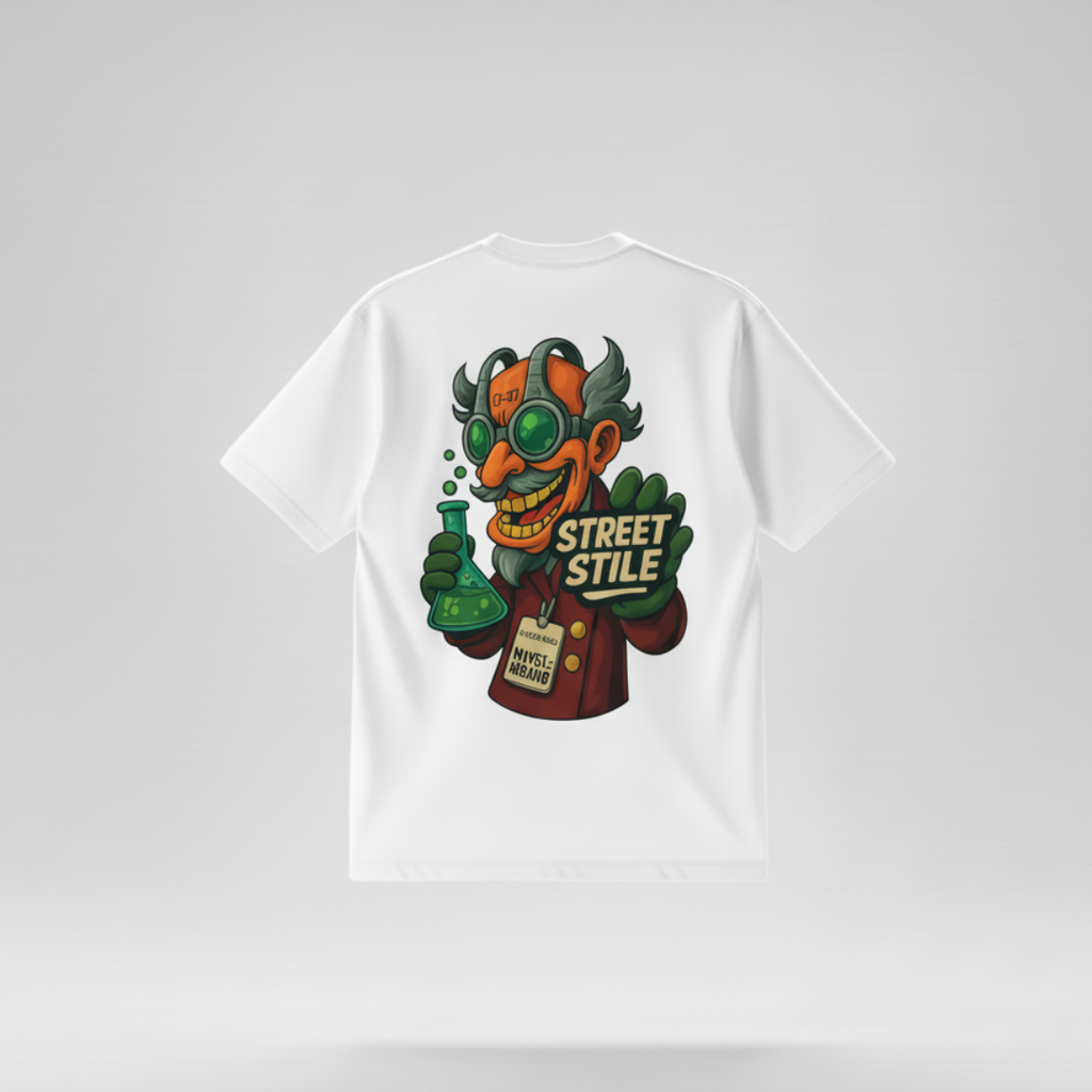O caimento oversized e a estampa vibrante projetam uma energia incontrolável. Você não apenas veste uma camiseta, você é a reação. Sinta o poder de ser o "Químico Insano" da sua própria vida.